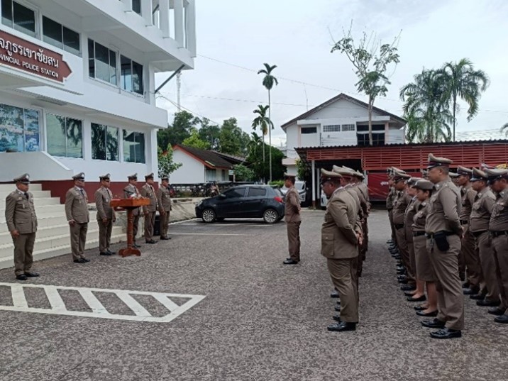 กิจกรรม “วันตำรวจ” ประจำปี พ.ศ.๒๕๖๗ 17 ตุลาคม 2567 โดย admin / ข่าวประชาสัมพันธ์,ข่าวฝากประชาสัมพันธ์,ข่าวภารกิจผู้บังคับบัญชา,งานสอบสวน,งานสอบสวน,งานสอบสวน (ต.ค.),งานสืบสวน,งานสืบสวน,งานสืบสวน (ต.ค.),งานอำนวยการ,งานอำนวยการ,งานอำนวยการ (ต.ค.),ไม่มีหมวดหมู่ เมื่อวันพฤหัสบดีที่ ๑๗ ตุลาคม ๒๕๖๗ เวลา ๐๘.๐๐ น. พ.ต.อ.ไพบูลย์ บุญยรัตน์ ผกก.สภ.เขาชัยสนพร้อมด้วยข้าราชการตำรวจในสังกัด ร่วมพิธีเคารพธงชาติ สวดมนต์ไหว้พระ อ่านสาร ผบ.ตร. กล่าวคำสัตย์ปฏิญาณตน มอบใบประกาศฯ ข้าราชการตำรวจที่ประพฤติปฏิบัติดีเยี่ยมตามประมวลจริยธรรมและจรรยาบรรณของตำรวจ เนื่องในวันตำรวจ ประจำปี ๒๕๖๗ ณ บริเวณหน้าอาคาร ที่ทำการ สภ.เขาชัยสน FacebookFacebookXXLINELine