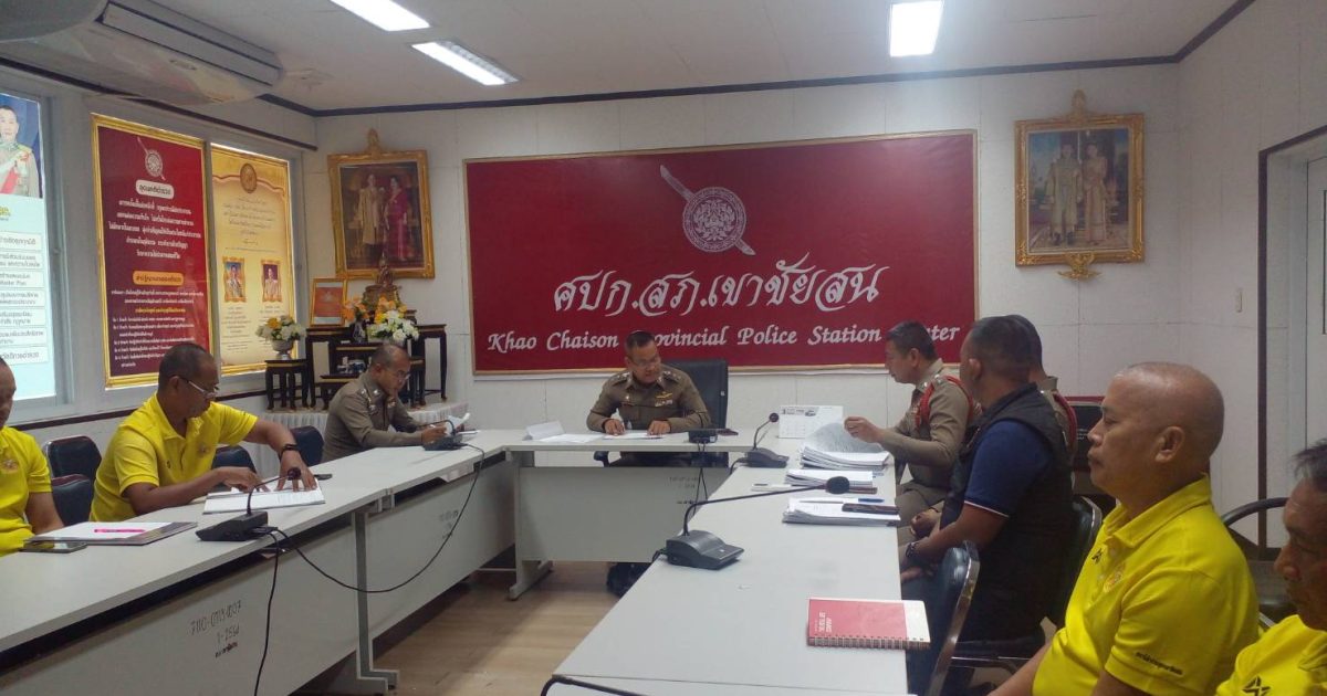 งานสอบสวน ร่วมประชุม เร่งรัด โดย พ.ต.อ.ไพบูลย์ บุญยรัตน์ ผกก.สภ.เขาชัยสน เรื่องสำนวนค้างของ พงส.แต่ละนาย ติดตามตรวจสอบบัญชีรถของกลาง ข้อมูลการประกัน การอายัดตัวผู้ต้องหา การลงคุมบัญชีสถิติต่างๆ ณ ห้องประชุม ศปก.สภ.เขาชัยสน
