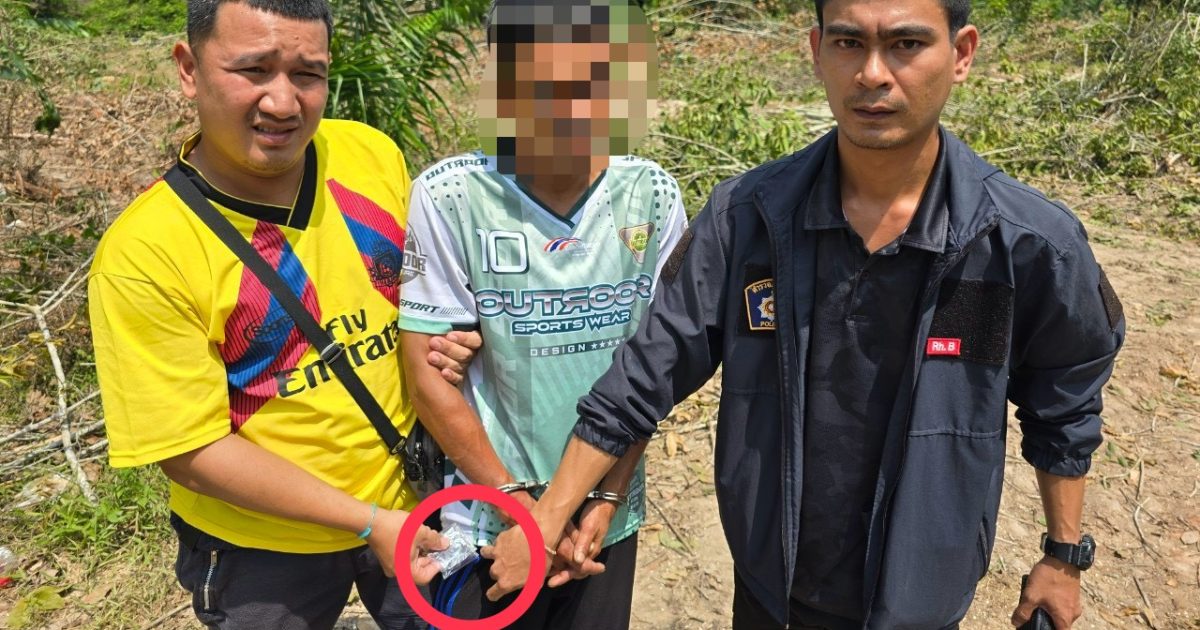 สถานที่จับกุม ภายในแปลงไม้ยางพารา หมู่ที่ ๑ ต.หานโพธิ์ อ.เขาชัยสน จว.พัทลุง เมื่อวันที่ ๒๕ มีนาคม ๒๕๖๘ เวลาประมาณ ๑๓.๔๐ น.