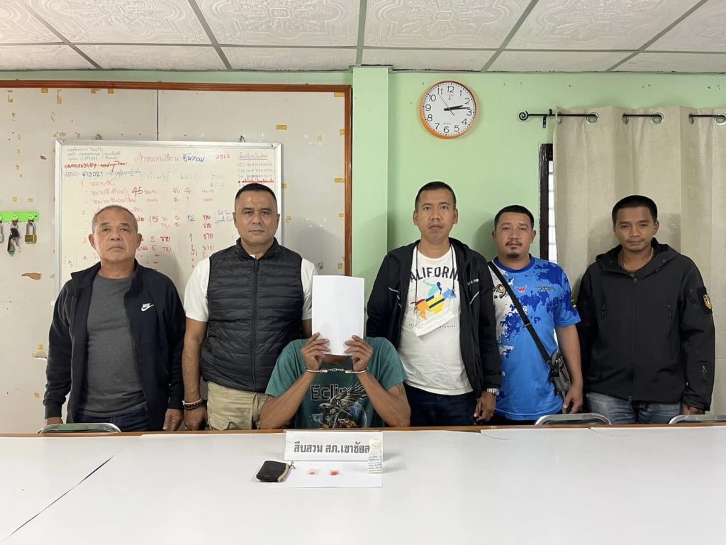 ชุดสืบสวน สภ.เขาชัยสน จับกุมผู้ต้องหา พร้อมของกลางยาบ้า 18 เม็ด