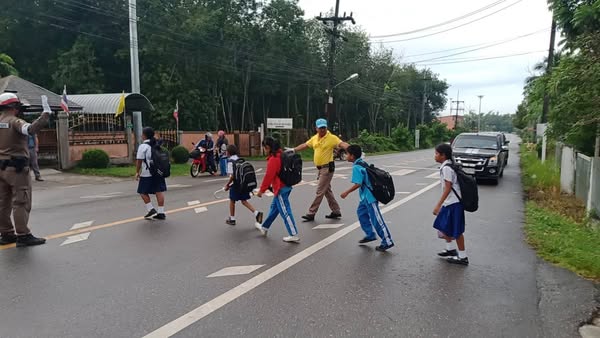 ตร.จิตอาสาจราจรอำนวยความสะดวกด้านการจราจร บริเวณหน้า รร.เทศบาลเขาชัยสน