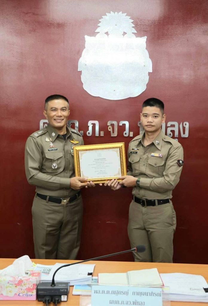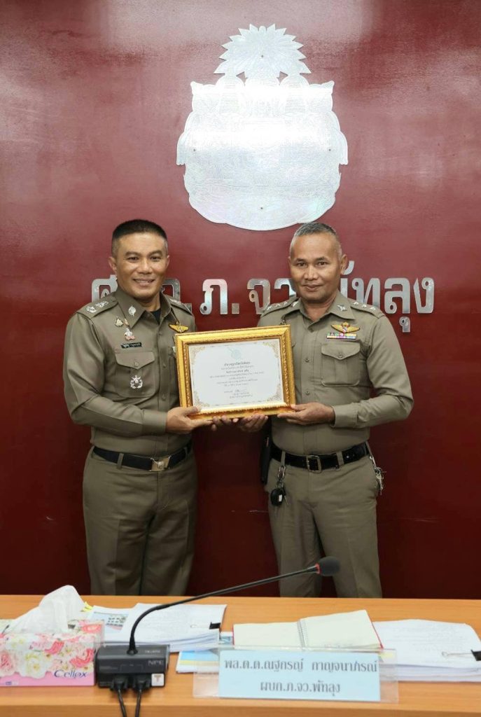 ทำดีมีรางวัล งานสืบสวน 13 ธันวาคม 2567 โดย admin / ข่าวประชาสัมพันธ์,ข่าวฝากประชาสัมพันธ์,งานสืบสวน,งานสืบสวน,งานสืบสวน (ธ.ค.),ไม่มีหมวดหมู่ วันนี้ 13 ธ.ค.2567 เวลา 10.00 น.พล.ต.ต.ณฐกรญ์ กาญจนาภรณ์ ผบก.ภ.จว.พัทลุง ได้มอบเกียรติบัตรยกย่องข้าราชการตำรวจปฎิบัติหน้าที่ ดีเด่น มีความขยัน อุตสาหะ ประจำเดือน ตุลาคม 2567 จนนำไปสู่การติดตามจับกุมคนร้ายลักทรัพย์อะไหล่รถยนต์ และของเก่าได้ในที่สุด พื้นที่อำเภอเขาชัยสน 1.ร.ต.อ.ฐานุพงศ์ บัวชุม รองสว.สส.สภ.เขาชัยสน 2.ร.ต.อ.อภิชาติ ฤทธิ์ชู รองสว.(สส)สภ.เขาชัยสน 3. จ.ส.ต.อรรถพงค์ ทับทิม ผบ.หมู่(สส.)สภ.เขาชัยสน 4. ส.ต.ต.ธนทัต โชคมาก ผบ.หมู่(สส)สภ.เขาชัยสน # ทำดีต้องชื่นชม ครับผม FacebookFacebookXXLINELine