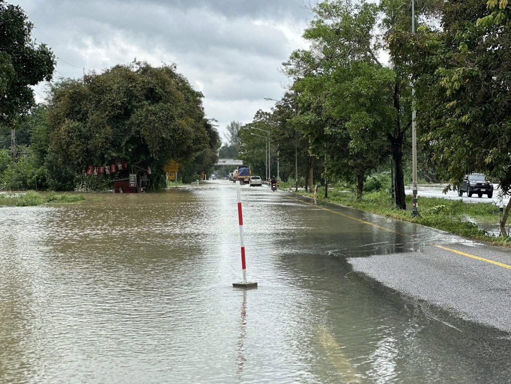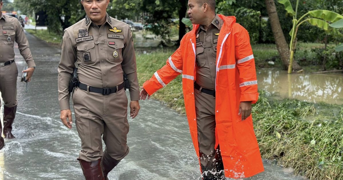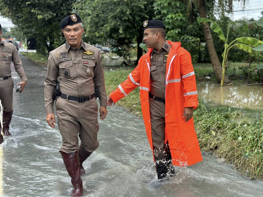 ผบก.ภ.จว.พัทลุง พล.ต.ต.ณฐกรญ์ กาญจนาภรณ์ พร้อม พ.ต.อ.ไพบูลย์ บุญยรัตน์ ผกก.สภ.เขาชัยสนร่วมตรวจสภาพน้ำในพื้นที่ทางหลวงหมายเลขที่