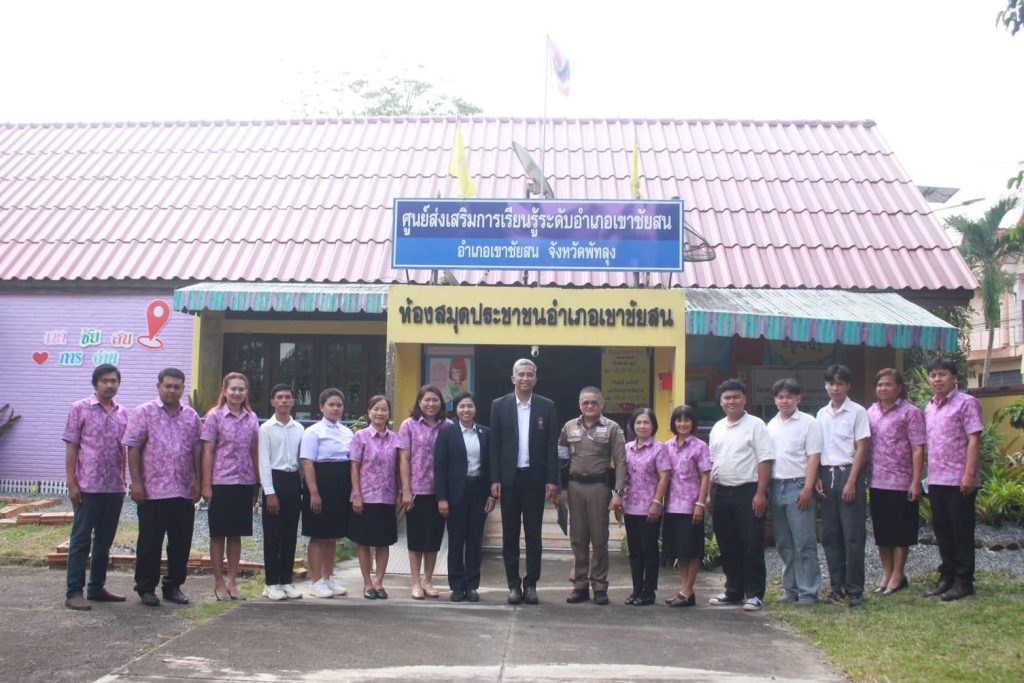 ให้ข้อมูลสถานศึกษาสีขาวการประเมินสถานศึกษาศูนย์ส่งเสริมการเรียนรู้ระดับอำเภอเขาชัยสน (สกร.) กับคณะกรรมการประเมินระดับทอง ณ ศูนย์ส่งเสริมการเรียนรู้ระดับอำเภอเขาชัยสน จ.พัทลุง