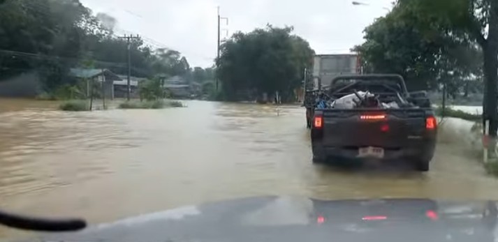 ศูนย์จราจรสถานีตำรวจภูธรเขาชัยสนออกตรวจพื้นที่น้ำถ้วมขัง