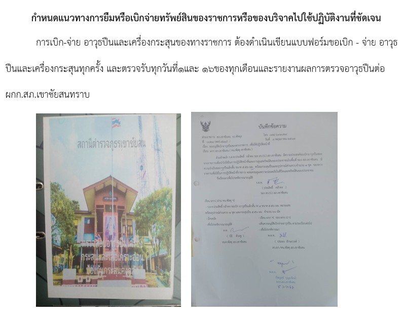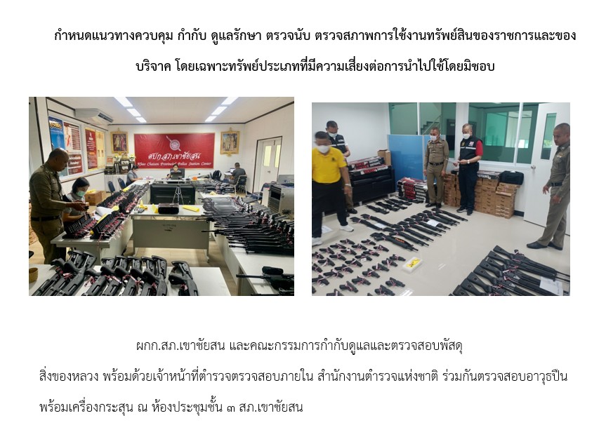 มีการตรวจสอบและตรวจนับอาวุธยุทธภัณฑ์ของทางราชการ เพื่อให้มีความพร้อมในการปฏิบัติหน้าที่เป็นประจำทุกเดือน